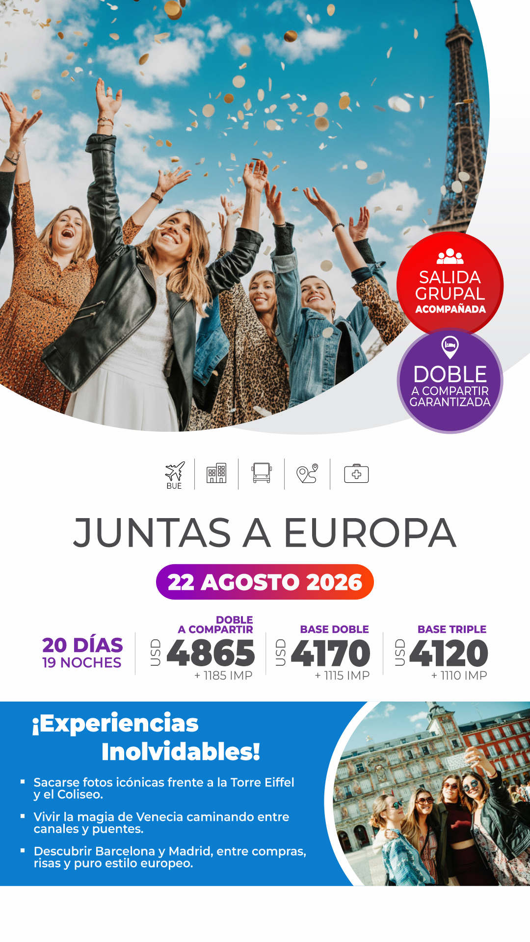 Elegí los destinos que más te interesan para ofrecer a tus clientes Ya esta listos para utilizarlos en tus campañas en redes sociales o imprimir y colocar en tu vidriera!