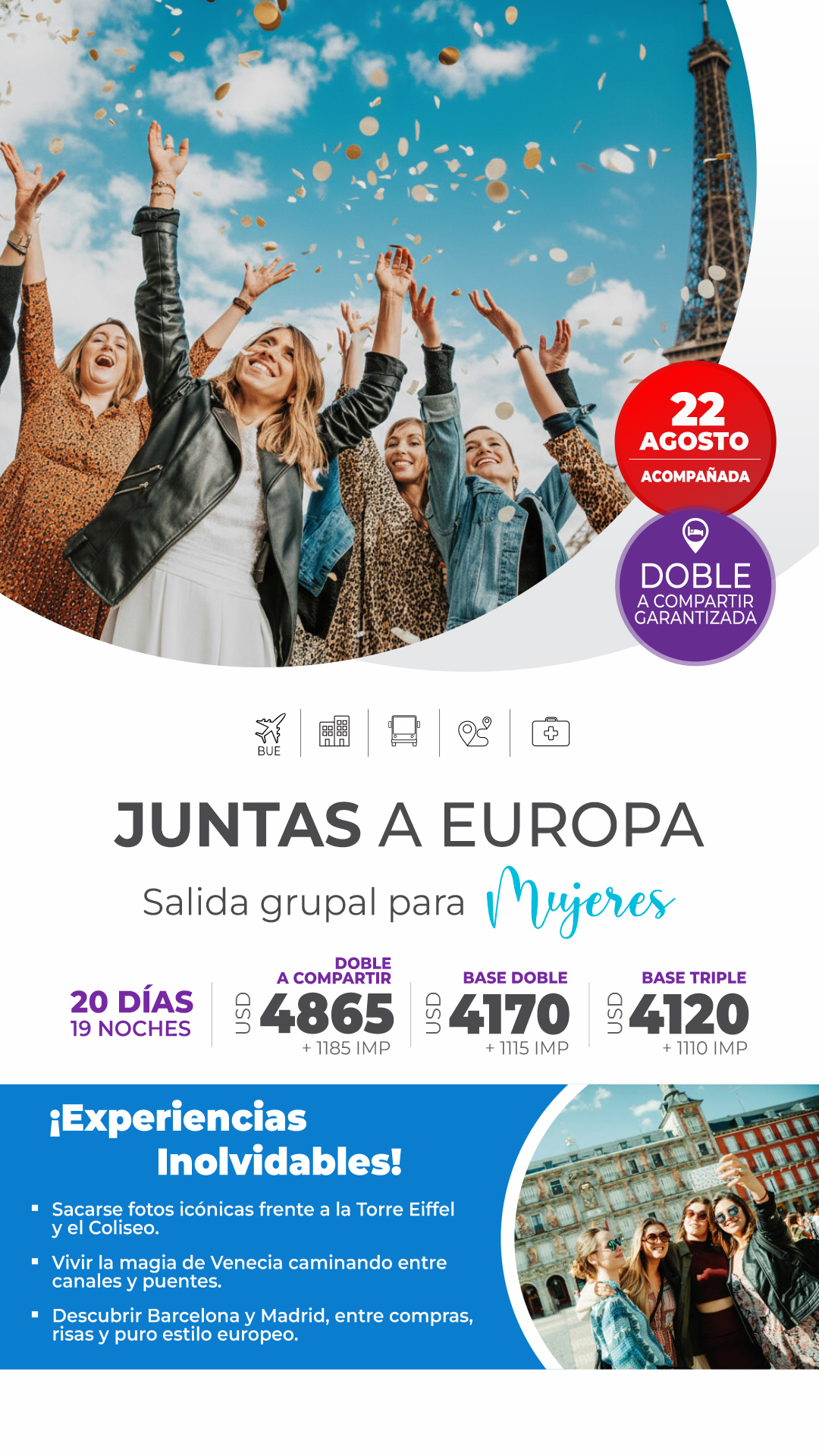 Elegí los destinos que más te interesan para ofrecer a tus clientes Ya esta listos para utilizarlos en tus campañas en redes sociales o imprimir y colocar en tu vidriera!